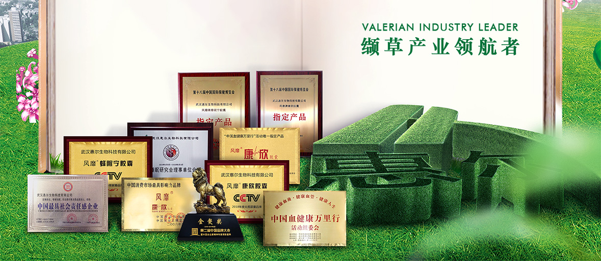 先人后己,和衷共济!缬草产业化,惠尔惠天下!聚焦健康产业,助力健康中国! 企业介绍 发展历程 企业文化 资质荣誉 荣誉资质 (2021.12)中医药大健康-蜂眠宁 (2021.12)中医药大健康-蜂眠宁 (2019.10)中国睡眠研究会睡眠产业与转化工作委员会常务委员单位 (2019.7)清真认证 (2019.6)CCTV4蜂眠宁胶囊 (2019.3)中国企业家创新智库高级研究员-喻小军 (2019.3.5 )中国睡眠协会理事单位会员铜牌 (2018.12.03)康欣国博会指定产品证书 (2018.12.03)康欣国博会指定产品牌 (2018.12.03)蜂眠宁国博会指定产品证书 (2018.12.03)蜂眠宁国博会指定产品牌 (2018.11.25)品牌大会十大成长品牌 (2018.11.25)品牌大会发展成就奖 (2018.11.25)金獒奖奖杯 (2018.11.01)央视康欣 (2018.11.01)央视蜂眠宁 (2018.6.23)中国针灸学会针刀产学研创新联盟常务理事-曾庆奇 (2017.11.28)中药协会-熊义涛 (2017.11.28)中药协会-惠尔 (2017.11.28)中药协会-曾庆奇 (2017.3.15)最具责任感证书 (2017.3.15)最具责任感铜牌 (2008.8.19)中国血健康万里行组委会 (2006.8.19)中国血健康万里行指定产品牌匾 (2006.4.1)中国消费市场最具影响力品牌证书 (2006.4.1)中国消费市场最具影响力品牌 (2022.6.7)缬草痛经方 (2022.6.7)缬草总生物碱提取物及其制备方法 (2022.1.4 )缬草总生物碱提取物在制备马拉色菌抑制剂中的用途专利 (2021.4.20)发明-缬草强肾方 (2015.10.7)山竺健骨方 (2009.4.15)发明-缬草心脑方 (2021.12.7)实用新型-一种助眠香薰装置 (2021.11.9)实用新型-一种缬草提取装置 (2021.10.22)实用新型-一种熏条生产装置 (2021.10.22)实用新型-一种挥发油包埋装置 (2021.6.22)外观设计-助眠贴 (2021.4.6)外观设计-康欣胶囊 (2021.4.2)外观设计-莱菔膏 (2020.11.16)软著-惠尔和缬会员客服系统 (2020.11.16)软著-惠尔骨关节健康管理系统 (2020.10.9)软著-惠尔心血管健康管理系统 (2020.10.9)软著-惠尔睡眠健康管理系统